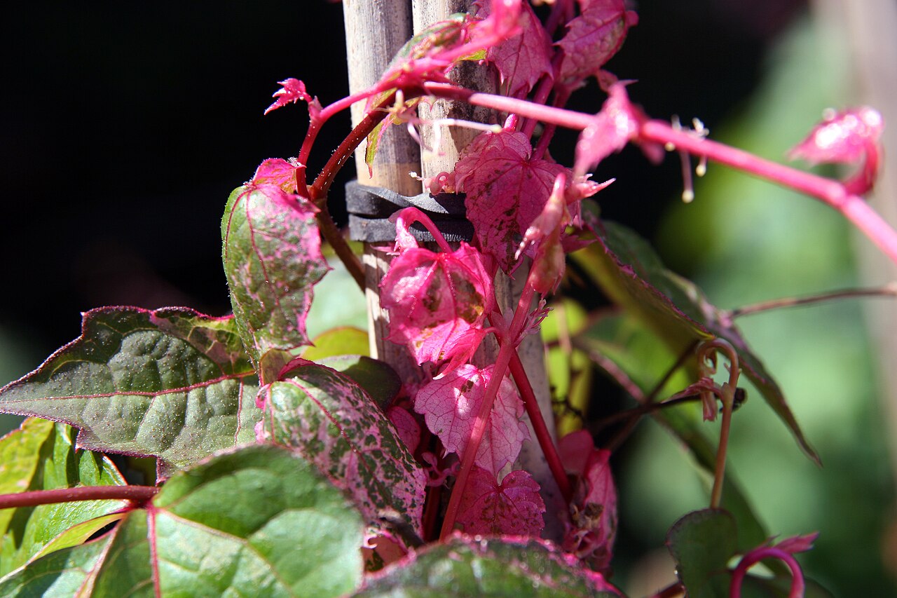 Сорт, который сразу привлекает внимание. Молодые побеги с розово-белым оттенком создают эффект «живой мозаики» на фасаде. Отлично подходит для озеленения стен, заборов и пергол.